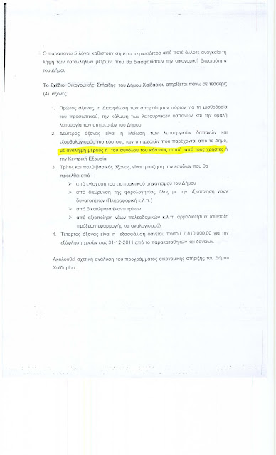 · Νέο δάνειο ως έκτακτη επιχορήγηση 8.581.678€ για την πληρωμή χρεών, με μνημονιακούς όρους, σε βάρος των δημοτών και της πόλης στα αμέσως επόμενα χρόνια (ΠΙΝΑΚΑΣ 5)